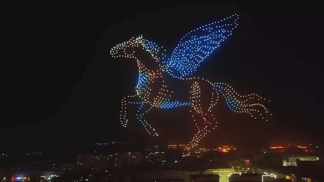 The show starts at 20:00 with more than 1,000 drones, which take flight simultaneously and move together in perfect synchrony to paint glowing shapes across the night sky.