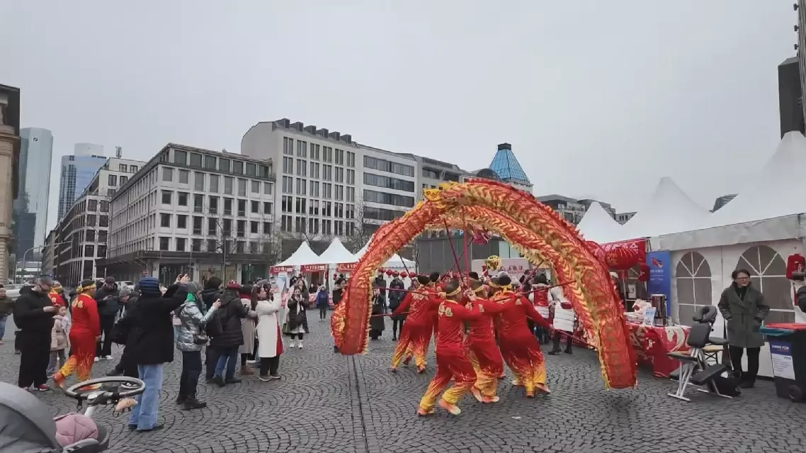 Meanwhile, the 2026 Frankfurt Spring Festival temple fair took place in Germany. Set to joyful holiday music, the national-level intangible cultural heritage performance “Dingbu Dragon” dance made a stunning appearance, delivering an authentic taste of the Chinese New Year to Frankfurt and drawing rounds of applause from the audience.