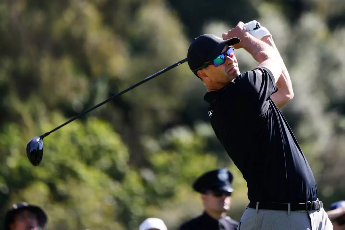 Adam Scott, from Australia, hits from the second tee during the final round of the Genesis Invitational golf tournament at Riviera Country Club, Sunday, Feb. 22, 2026, in the Pacific Palisades area of Los Angeles. (AP Photo/Caroline Brehman )