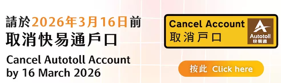 Since mid-December 2025, Autotoll Limited has notified users of the termination arrangements for Autotoll ETC and VGoPAY services via SMS, email and website (www.autotoll.com.hk/autotollclub/). In addition, the TD has instructed the HKeToll toll service provider to proactively remind Autotoll ETC and VGoPAY users in switching to other auto-payment means promptly to avoid disruption. Members of the public concerned will receive SMS messages sent by "#HKeToll" or emails from "do-not-reply1@hketoll.gov.hk" with steps on setting up auto-payment by linking a bank account or credit card, or direct debit from a Designated Stored Value Account (see details in Annexes) to pay tunnel tolls.