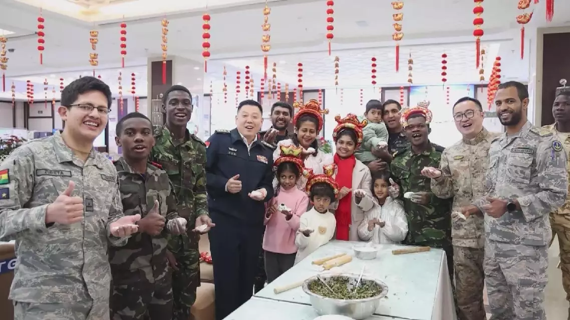 At the Naval University of Engineering in central China's Wuhan, Chinese and international cadets came together for traditional Chinese games such as ring toss and pitch-pot. Cadets and their families were also invited to gather together and make dumplings -- an essential food for the Spring Festival in many parts of the country.
