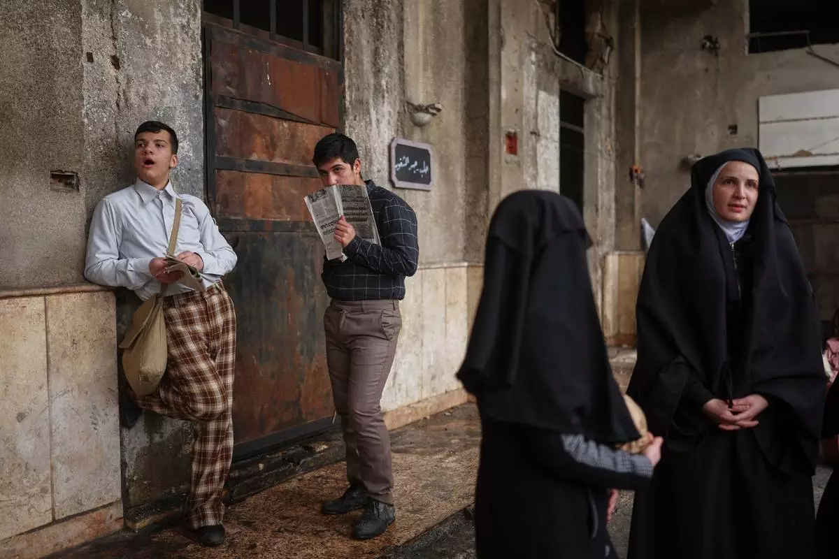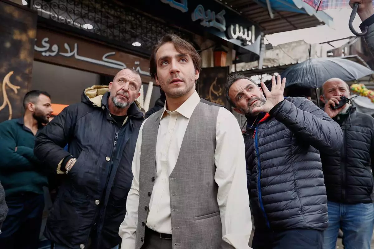 Just outside the camera’s view stood a stark reminder of Syria's more recent history. Collapsed buildings and damaged facades testified to Aleppo’s role as a major battleground during the country's civil war. However, with costumes, props and careful framing, the production temporarily carried the street back to what it portrays as a more innocent era.