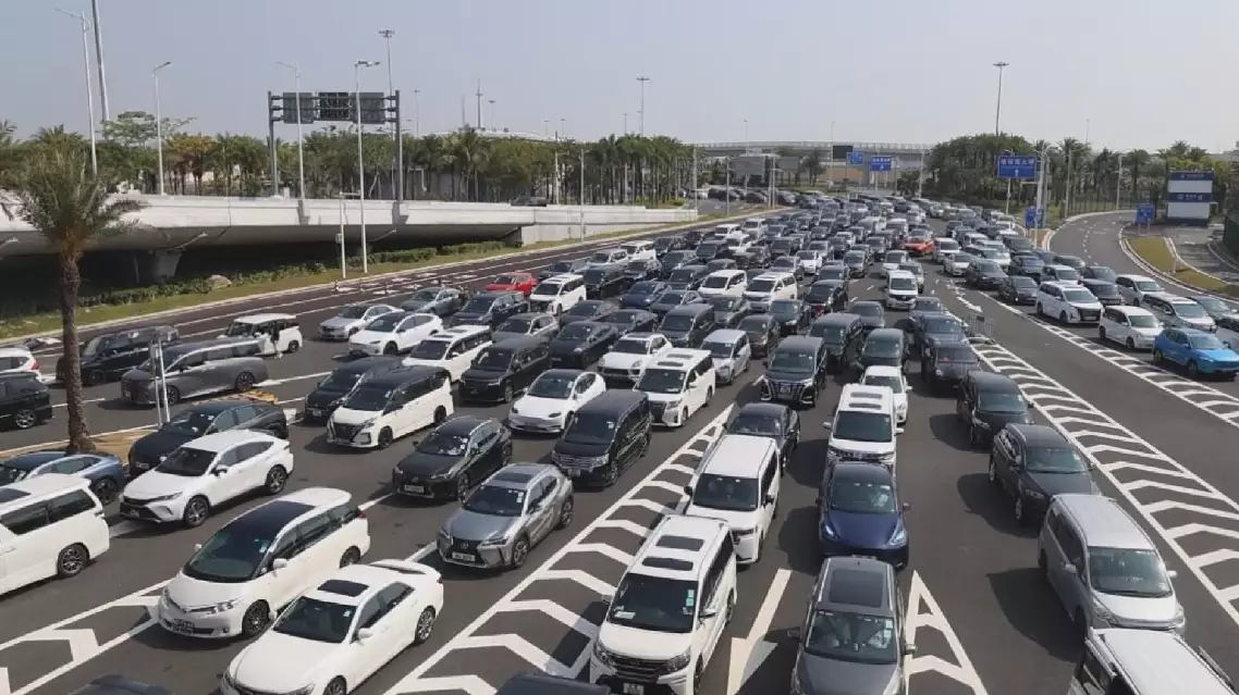 The daily traffic flow on Saturday was the highest since China launched special schemes on northbound travel for Hong Kong and Macao vehicles in 2023.
