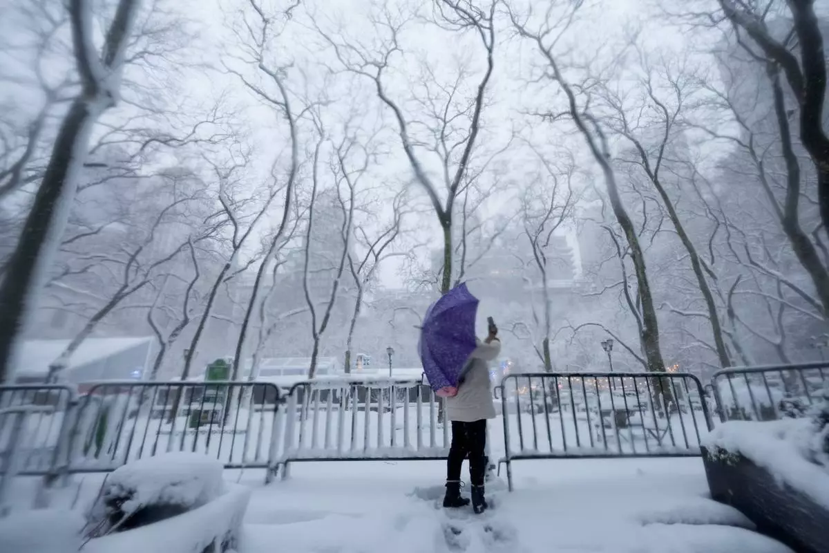 A vintage walking dress is held in preparation for The Metropolitan Museum of Art's spring exhibition, "Costume Art," on Thursday, Feb. 12, 2026, in New York. (Photo by Charles Sykes/Invision/AP)