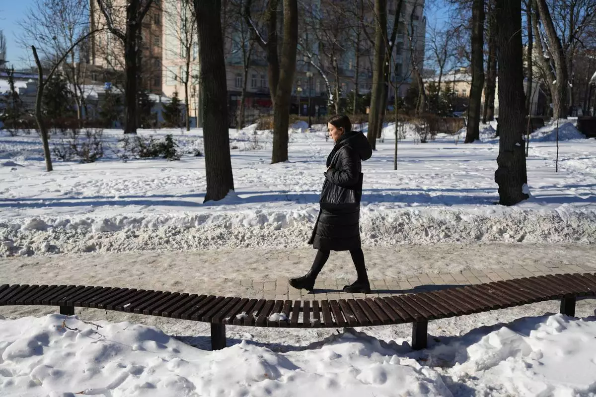 Liliia, 30, whose boyfriend is a prisoner of war, walks through a city park in Kyiv, Ukraine, Saturday, Feb. 21, 2026. (AP Photo/Sergei Grits)