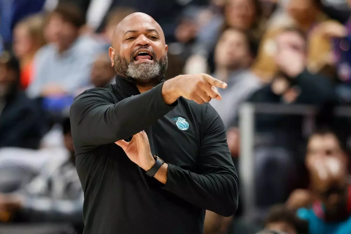 Detroit Pistons head coach J.B. Bickerstaff shouts to his team during the first half of an NBA basketball game against the San Antonio Spurs, Monday, Feb. 23, 2026, in Detroit. (AP Photo/Duane Burleson)