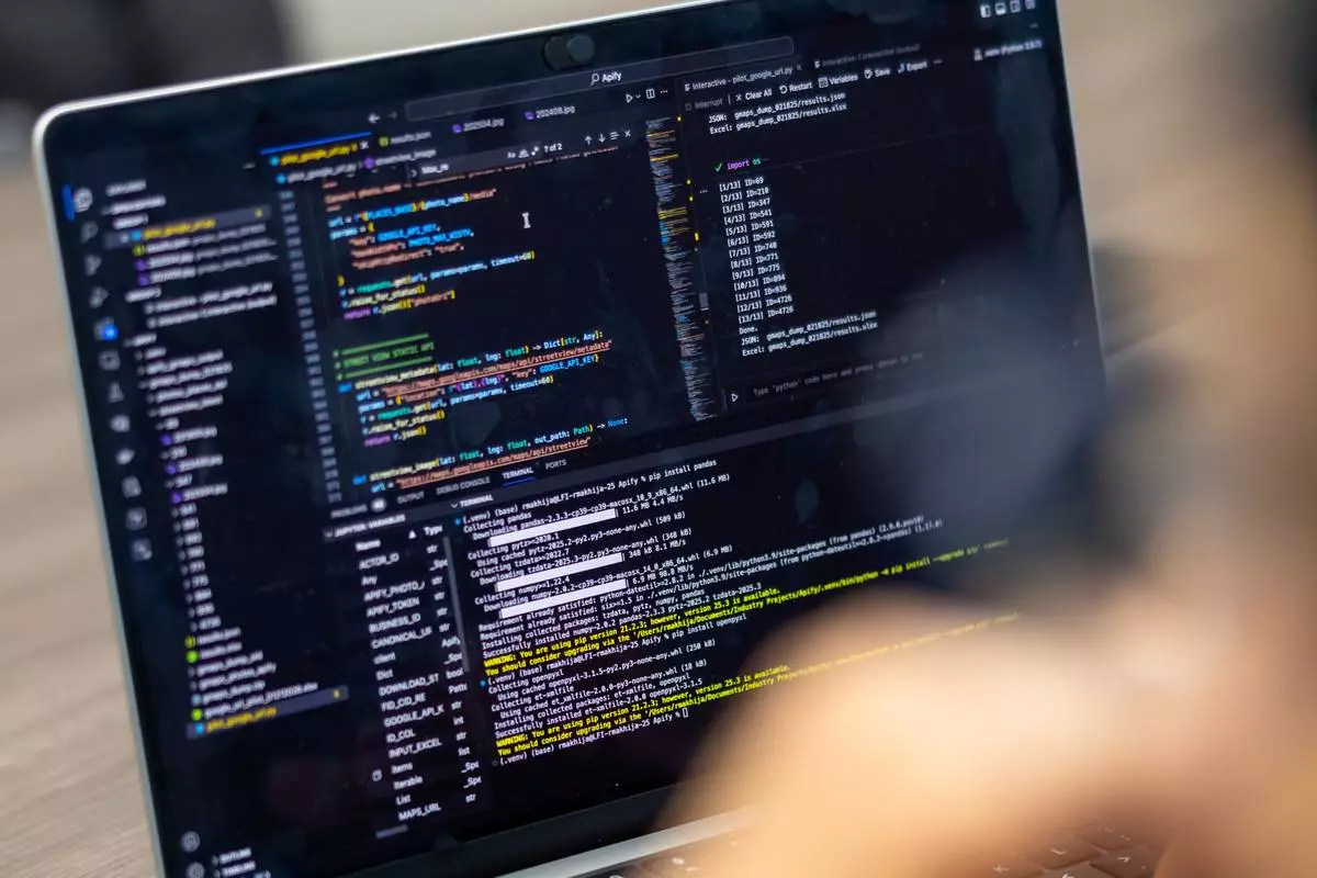 Programming used for an analysis of South Bend's 311 on a screen during a demonstration Thursday, Feb. 19, 2026, at City Hall in South Bend, Ind. (AP Photo/Michael Caterina)