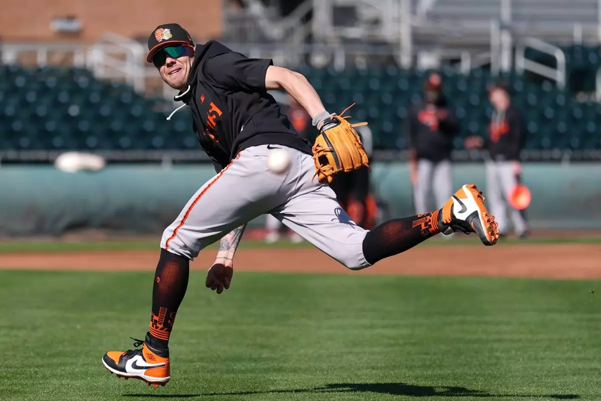 San Francisco Giants' Christian Koss works out during spring training baseball Thursday, Feb. 19, 2026, in Scottsdale, Ariz. (AP Photo/Ross D. Franklin)