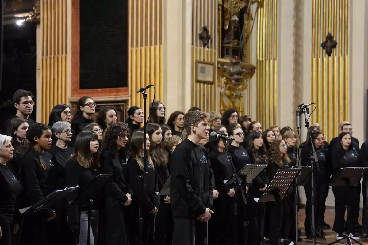 Coro Terzo Tempo perform during a concert at the church of Sant’Antonio Abate in Milan, Italy, on Feb. 18, 2026. (AP Photo/María Teresa Hernández)