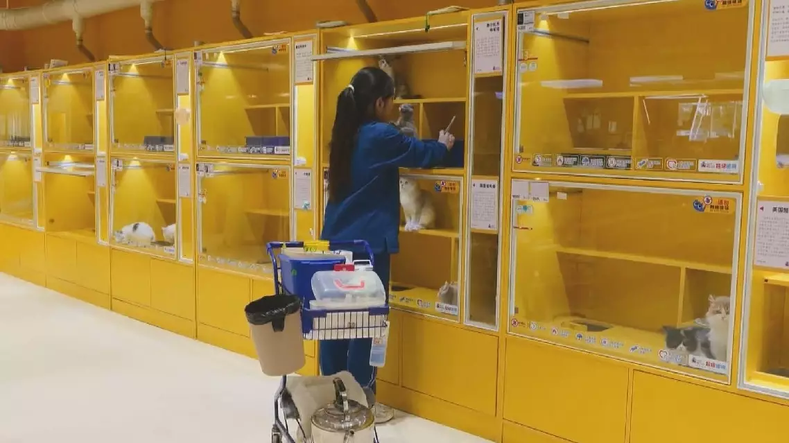 "Most pets are fed and walked twice daily if there is no special requirement, and owners typically bring their regular food. For animals with conditions, we provide appropriate diets. For example, we provide low-fat diets for pets with pancreatitis, and tailored prescription diets for pets with urinary problems," said staff member Wu Hesheng.