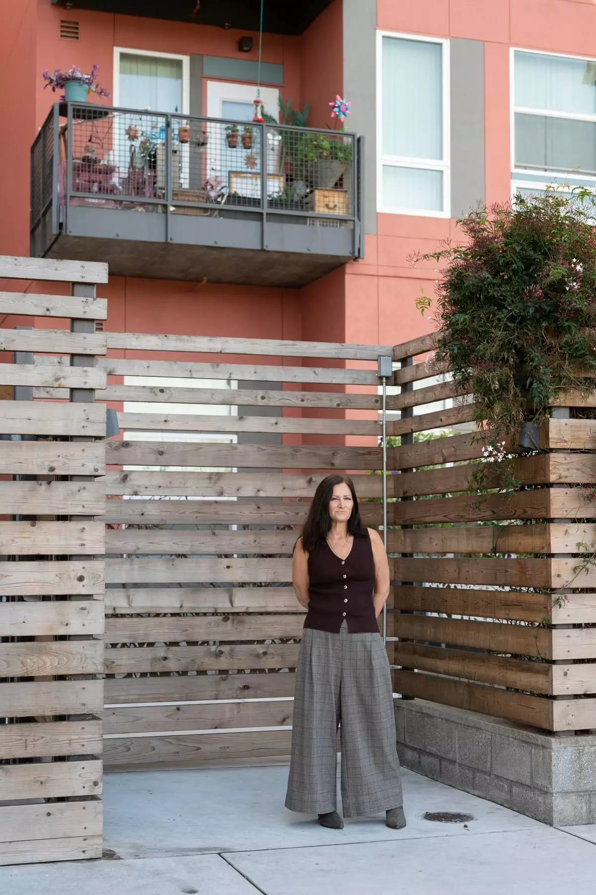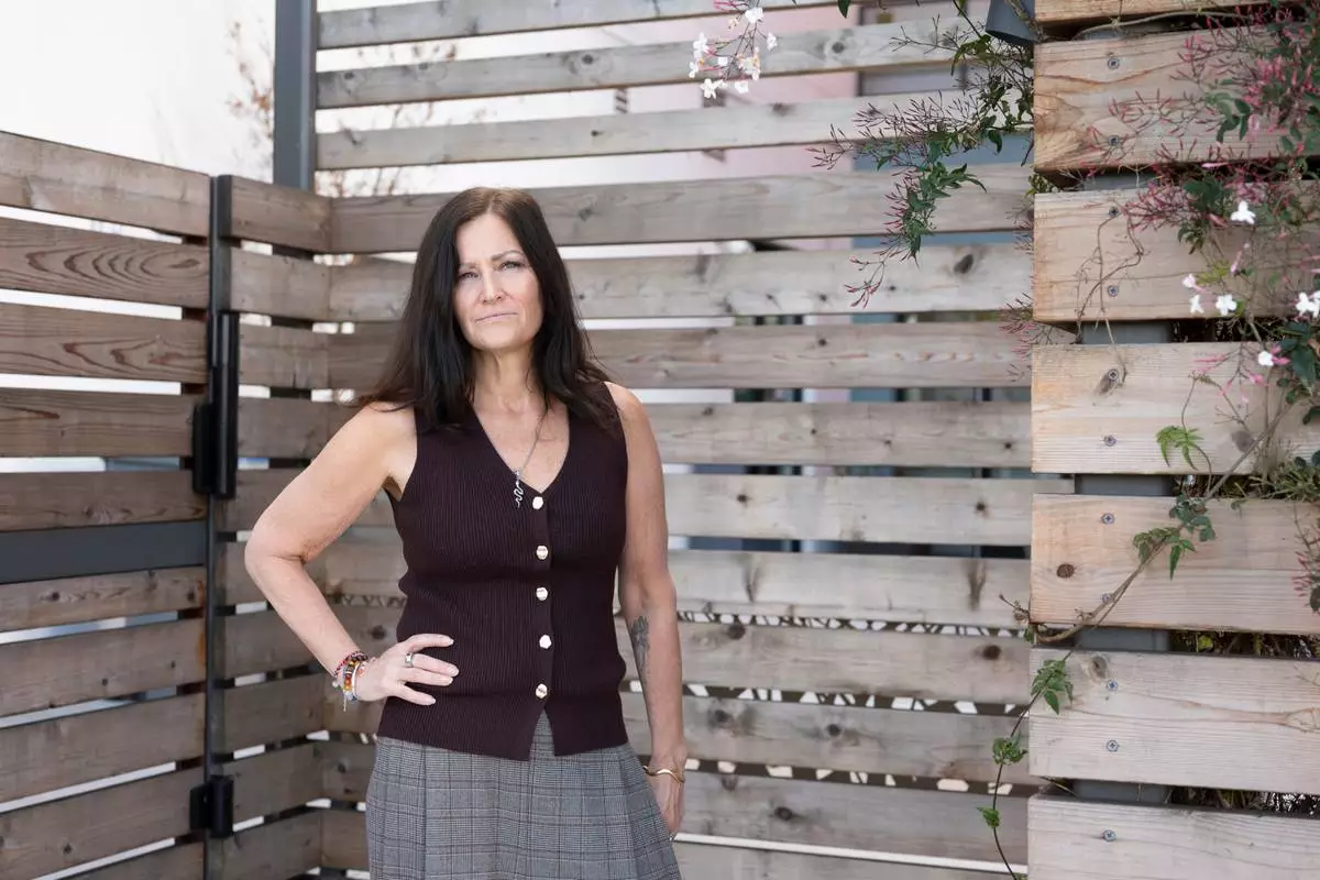 Jennifer Loving, CEO of Destination: Home, poses for a portrait outside of her office and housing units, Monday, Feb. 23, 2026, in San Jose, Calif. (AP Photo/Laure Andrillon)