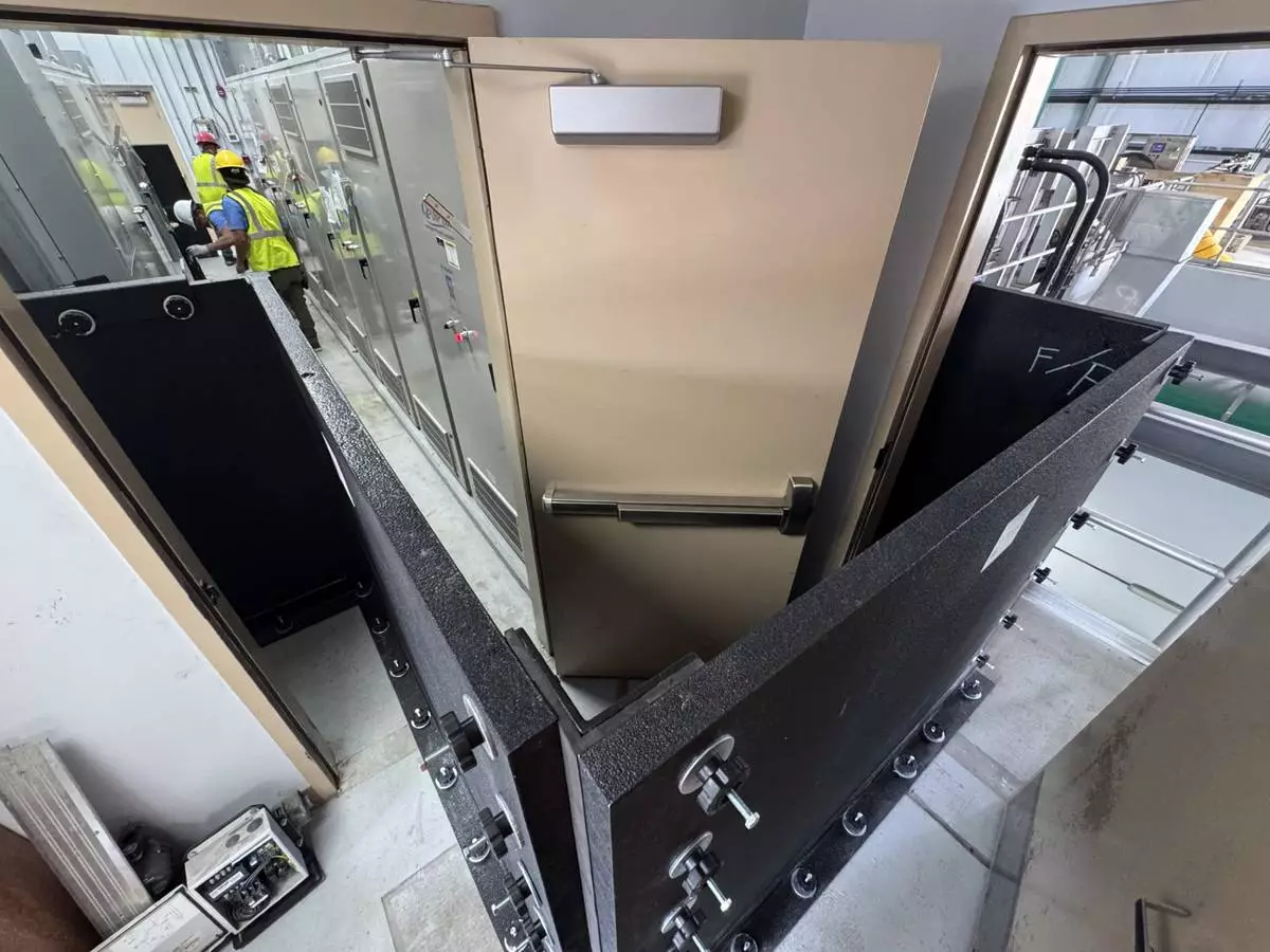 Each opening at the filter station required three flood panels, and the installed system now provides sufficient coverage for all 11 designated buildings at the Northeast facility. Tankersley emphasized that flood panels offer significant cost savings compared to elevating buildings, which could cost tens of millions of dollars per structure.
