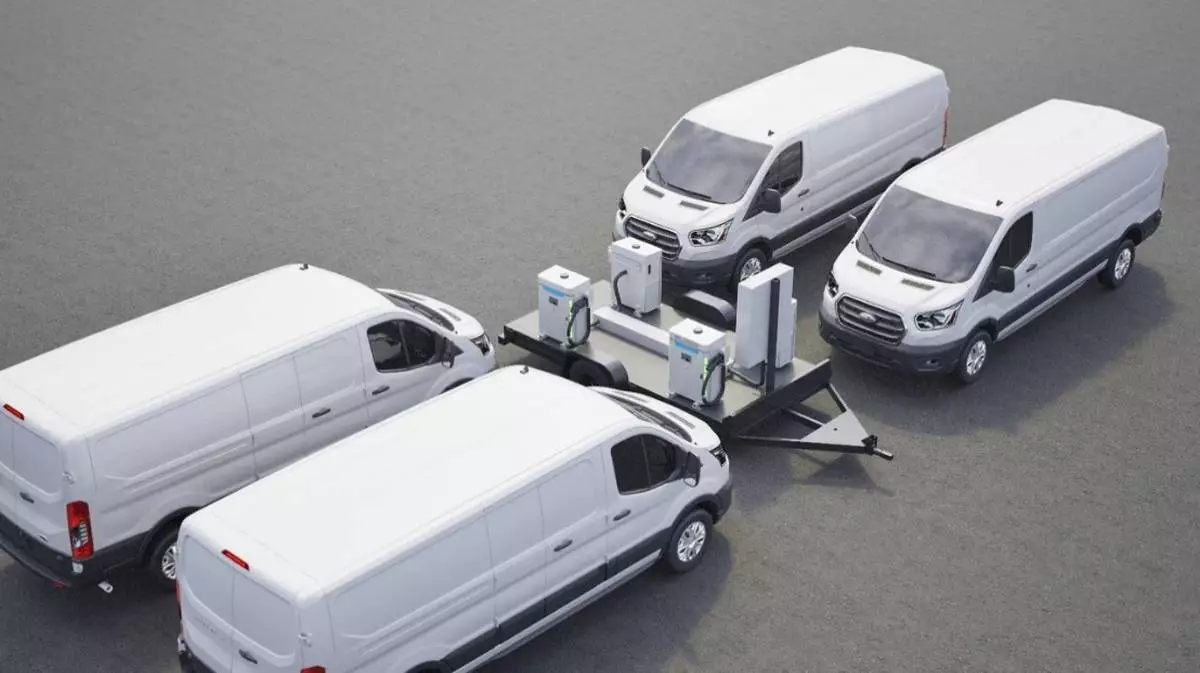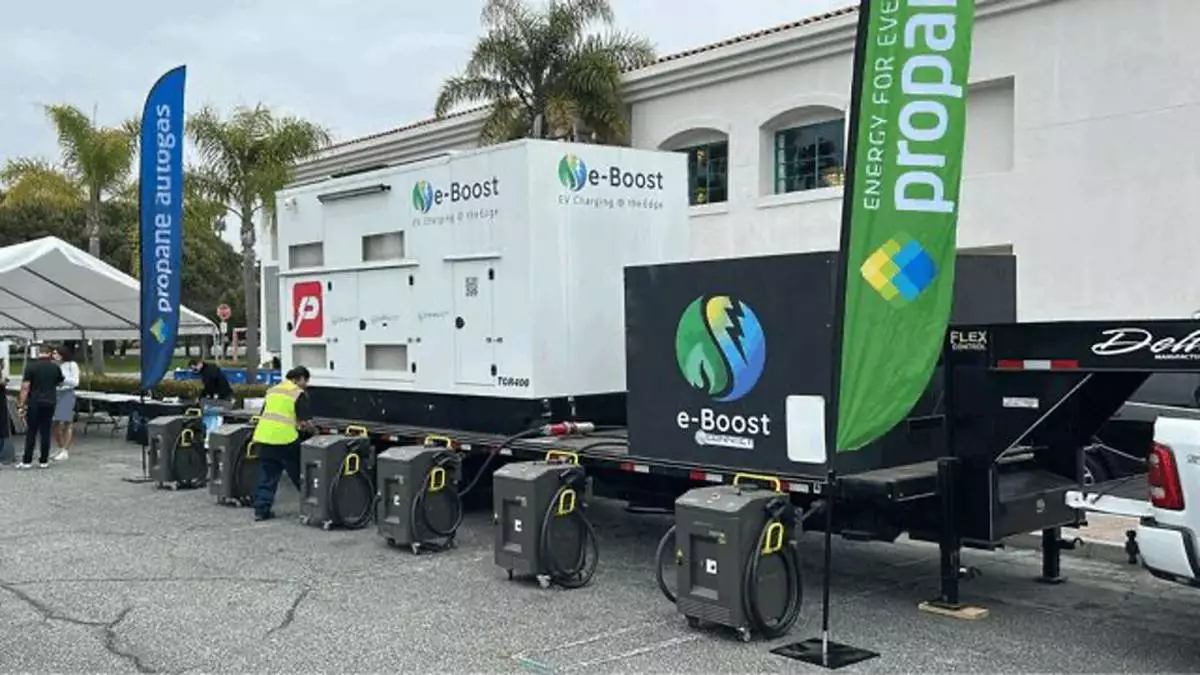 e-Boost Mobile 240 with six Heliox EV Chargers on wheels