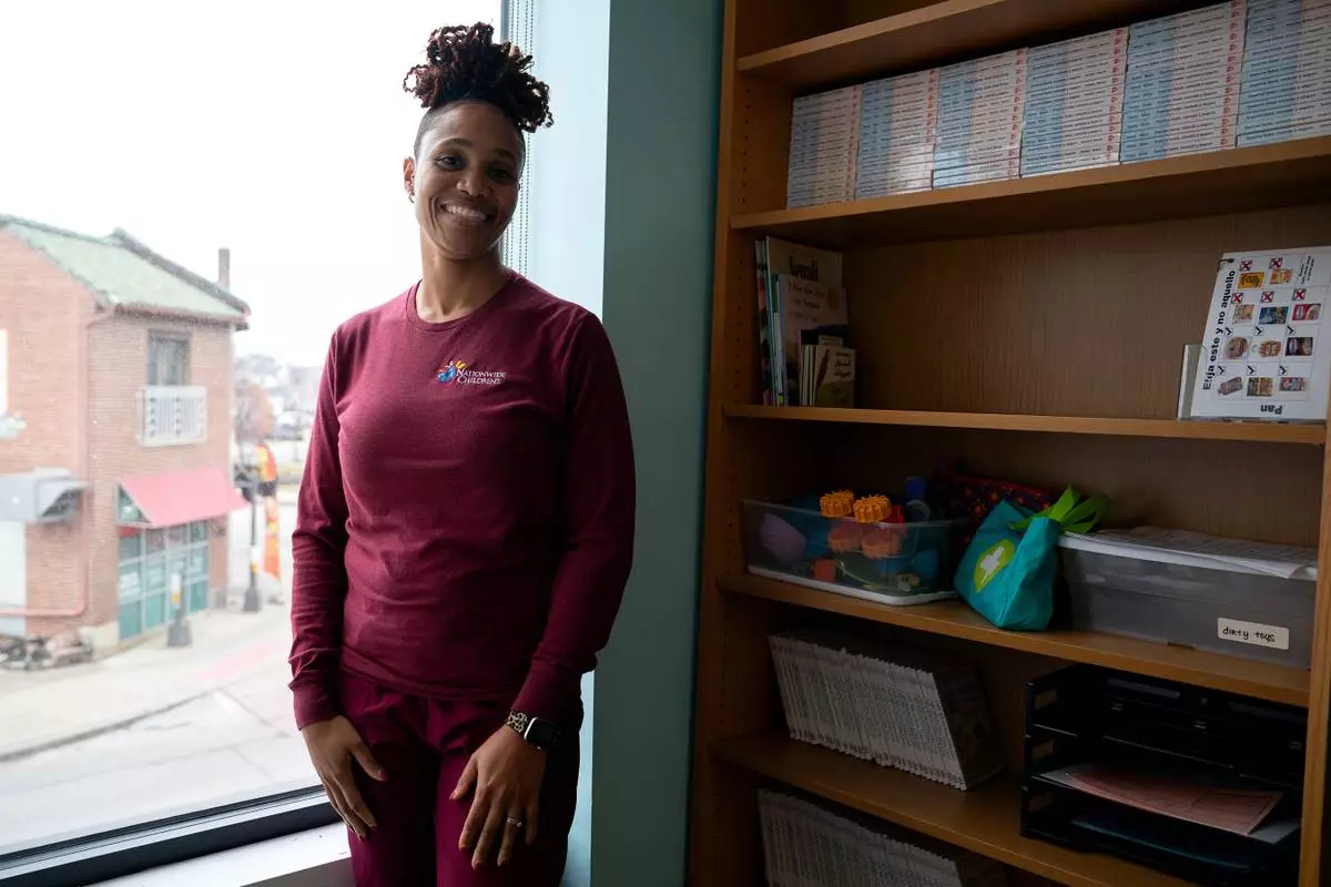 Carneshia Edwards, Lead Kindergarten readiness coordinator at Nationwide Children's health at Nationwide Children's hospital photographed at Linden Primary Care Center at Nationwide Children's Hospital, Thursday, Dec. 11, 2025, in Columbus, Ohio. (AP Photo/Jessica Phelps)