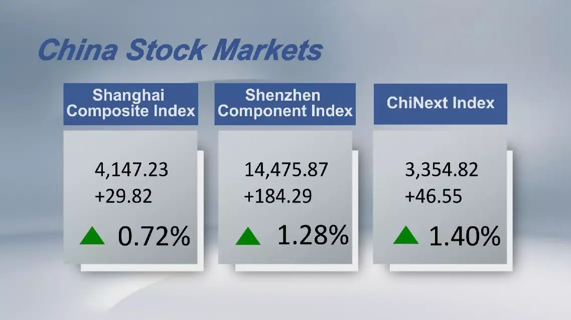 Chinese stocks closed higher on Wednesday, with the benchmark Shanghai Composite Index up 0.72 percent to 4,147.23 points.