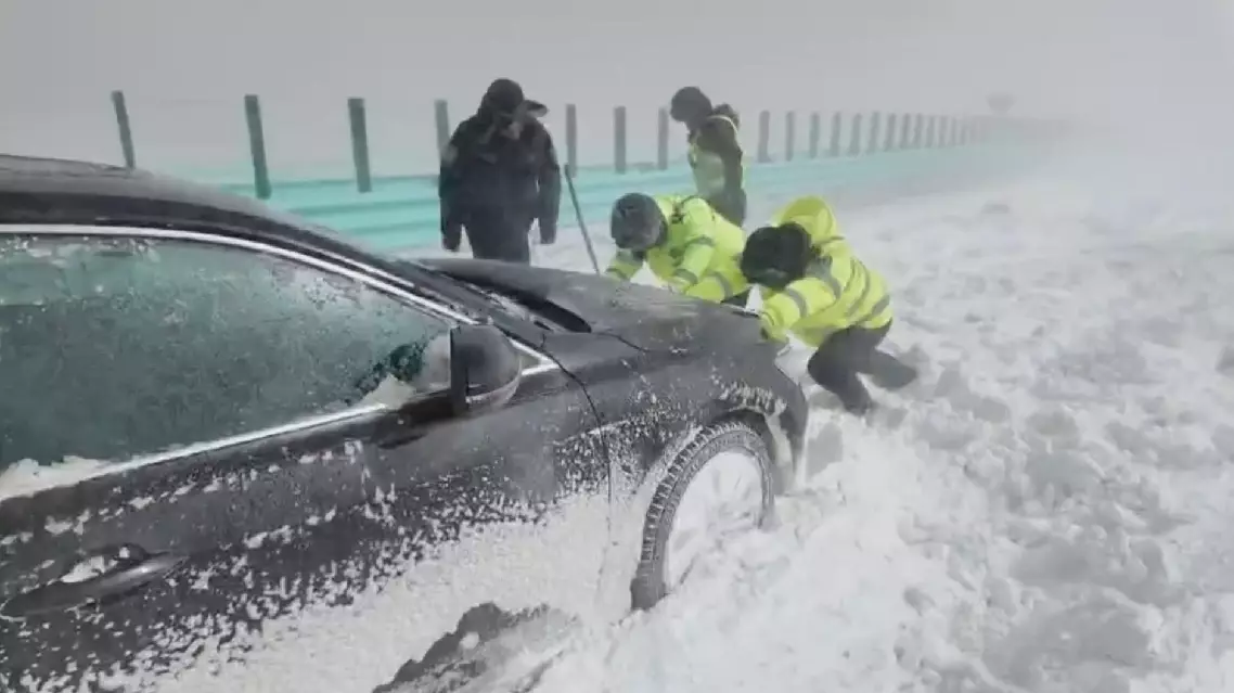 Local traffic police rescue as vehicles left trapped by heavy snowstorm in Xinjiang