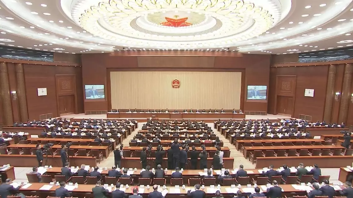 Zhao Leji, chairman of the 14th National People's Congress (NPC) Standing Committee, presided over the first plenary meeting of the committee's 21st session.