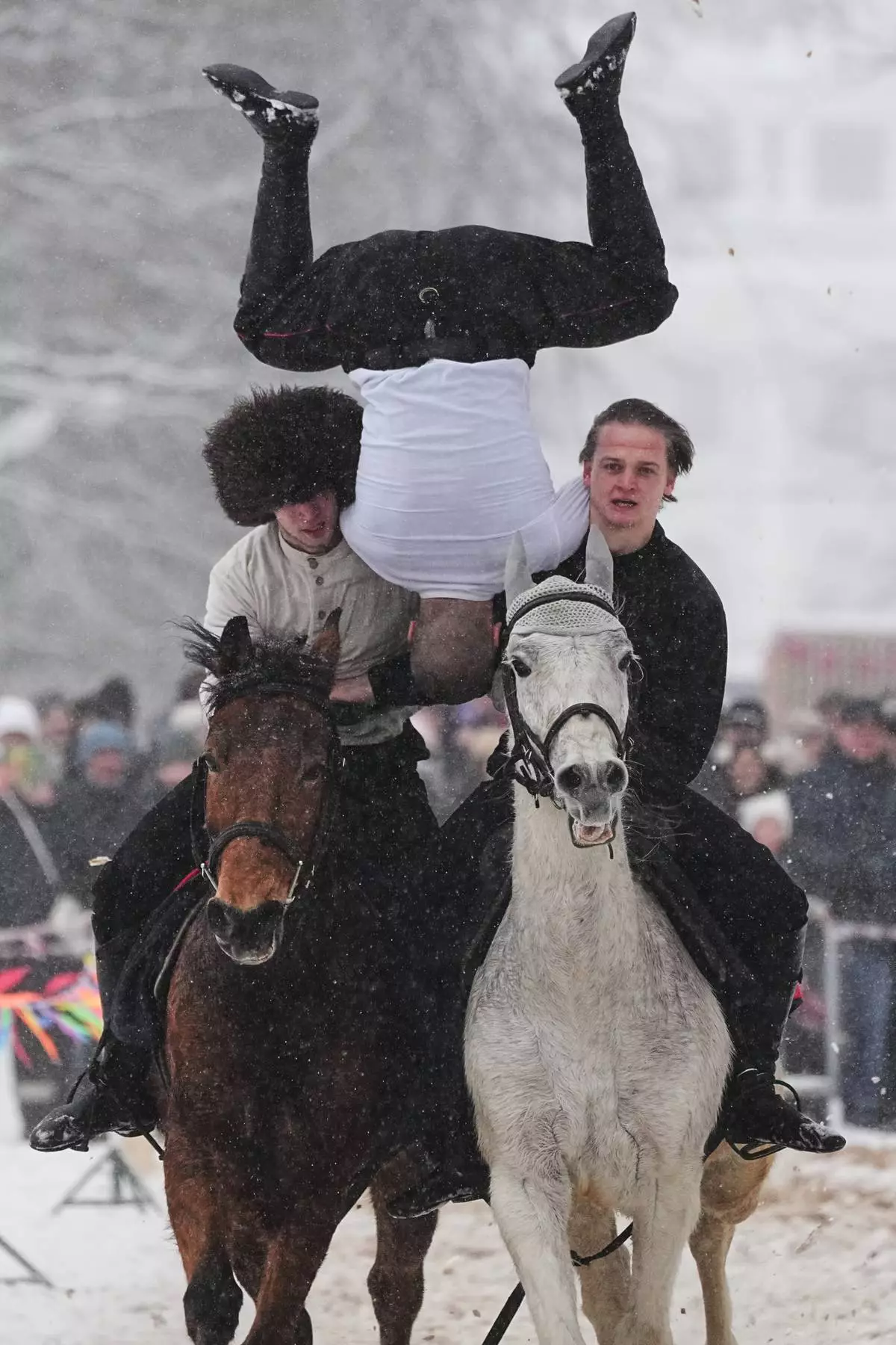 FILE - Riders show off their skills during Maslenitsa, or Shrovetide holiday celebrations in St. Petersburg, Russia, Feb. 22, 2026. (AP Photo/Dmitri Lovetsky, File)