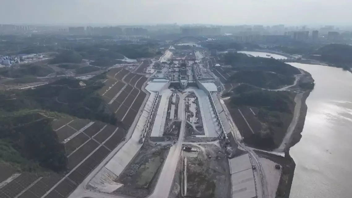 "This is the core hub of the entire canal. We ensure vessels can pass safely in accordance with navigation standards while controlling water levels and flow speeds. The metal structures here total 25,000 tons. All equipment has been fabricated, and installation has reached 8,000 to 9,000 tons," said engineer Wei Minxin.