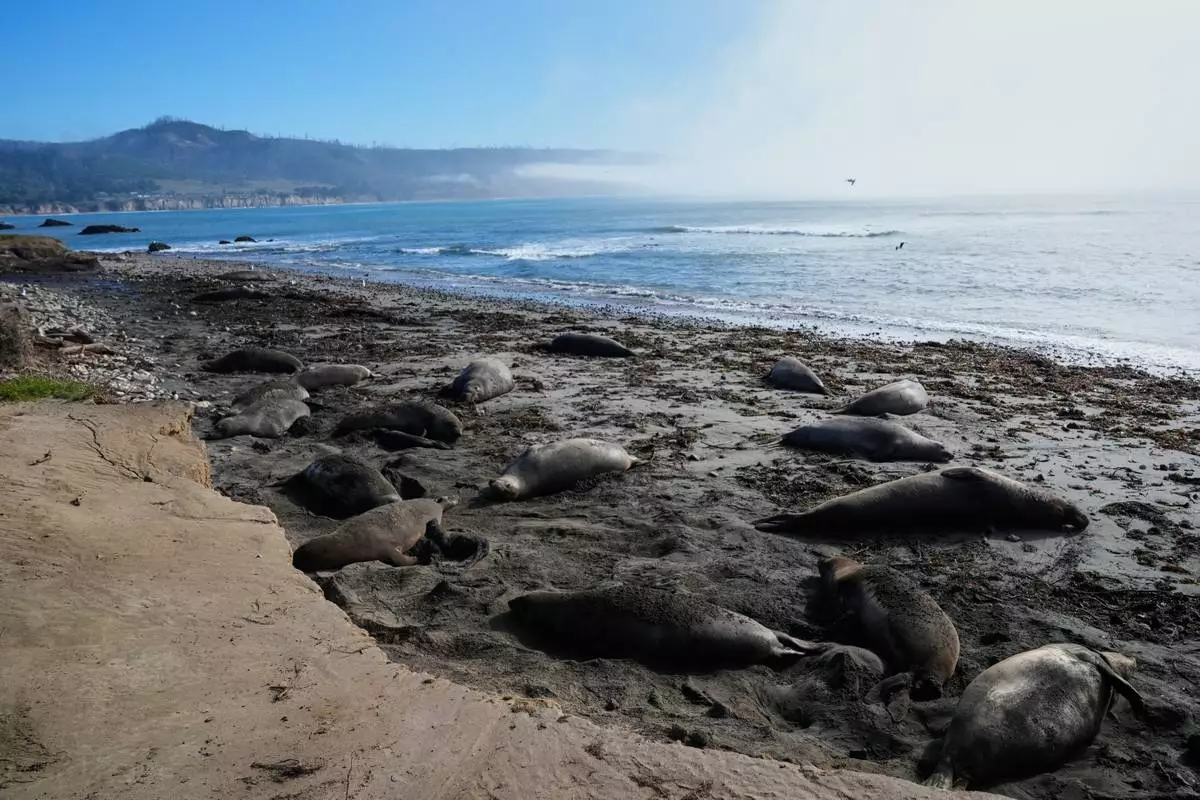 FILE - Elephant seals rest on a beach at Año Nuevo State Park, Friday, Jan. 16, 2026, in Pescadero, Calif. (AP Photo/Godofredo A. Vásquez,File)