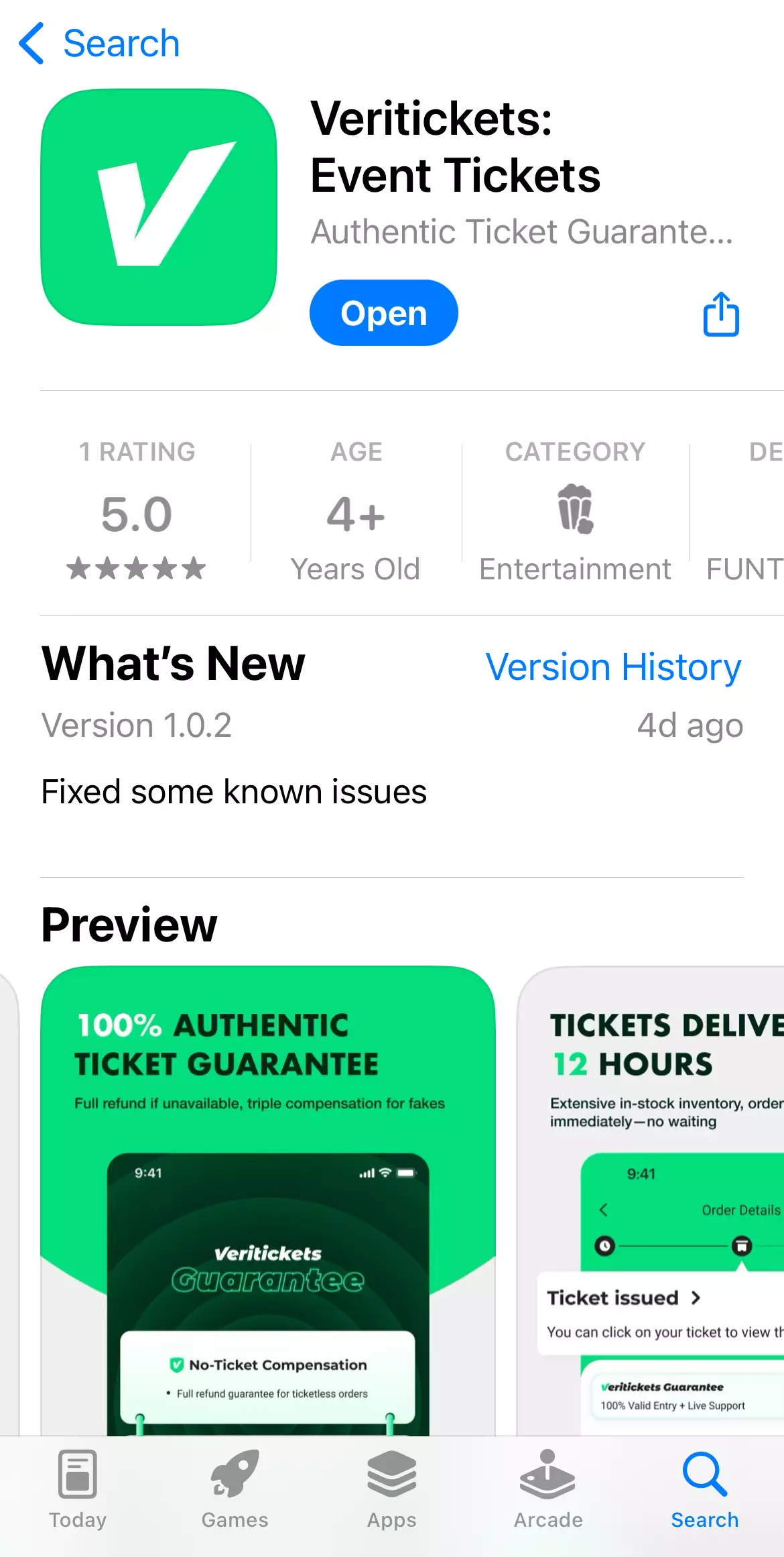 The platform also guarantees "100% verified tickets," supported by a consumer‑protection policy that offers a full refund plus additional compensation of up to the ticket price if a ticket is not delivered. Users can access the service via the Veritickets website or by downloading the mobile app from various app stores.