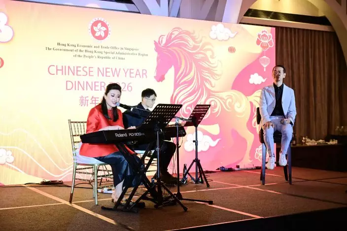 At the dinner, Hong Kong musicians Anna Lo and Rick Lau performed as guest artistes, presenting a selection of the widely acclaimed Hong Kong cabaret production "LauZone". Through songs written in a variety of dialects, they portrayed Hong Kong's unique character as a cultural melting pot, enabling the Singapore audience to find resonance in the stories told. The duo will also take part in the Huayi - Chinese Festival of Arts 2026 organised by Esplanade - Theatres on the Bay (the Esplanade), where they will stage three performances of "LauZone" on February 27 and 28, with support from the Esplanade and the Hong Kong Arts Development Council.