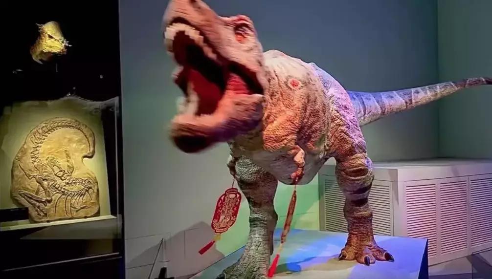 Although the Chinese New Year holiday has passed, the Hong Kong Science Museum is still full of festive joy. Recently, a netizen shared on their social platform that the exhibits at the museum's permanent exhibition, "Extinction · Resilience" had been decorated for the celebration of the Chinese New Year.