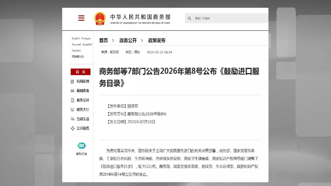 The new catalog aims to proactively expand the import of quality services, meet urgent domestic needs in high-quality development, and meet people's needs for better lives, according to a statement on the Ministry of Commerce website.