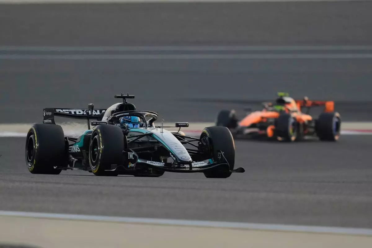 Mercedes driver George Russell of Britain steers his car during a Formula One pre-season test at the Bahrain International Circuit in Sakhir, Bahrain, Thursday, Feb. 12, 2026. (AP Photo/Altaf Qadri)