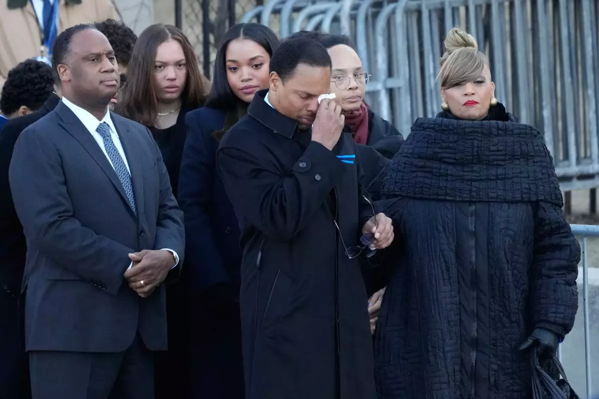 The family of Reverend Jesse Jackson arrives as Yusep Jackson wipes his eyes before public visitation at Rainbow/PUSH Coalition in Chicago, Thursday, Feb. 26, 2026. (AP Photo/Nam Y. Huh)