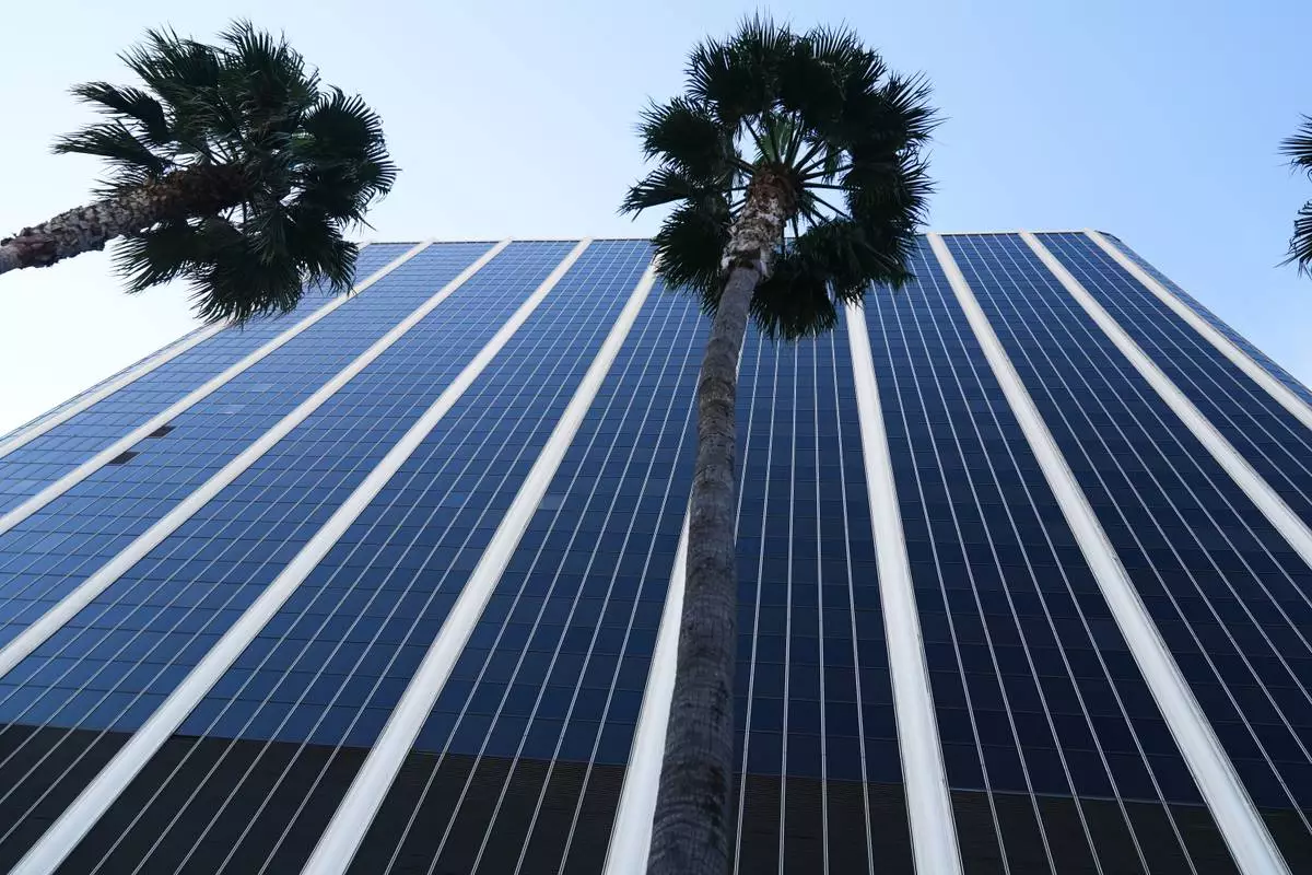 The exterior of LAUSD headquarters is shown Wednesday, Feb. 25, 2026, in Los Angeles. (AP Photo/Damian Dovarganes)