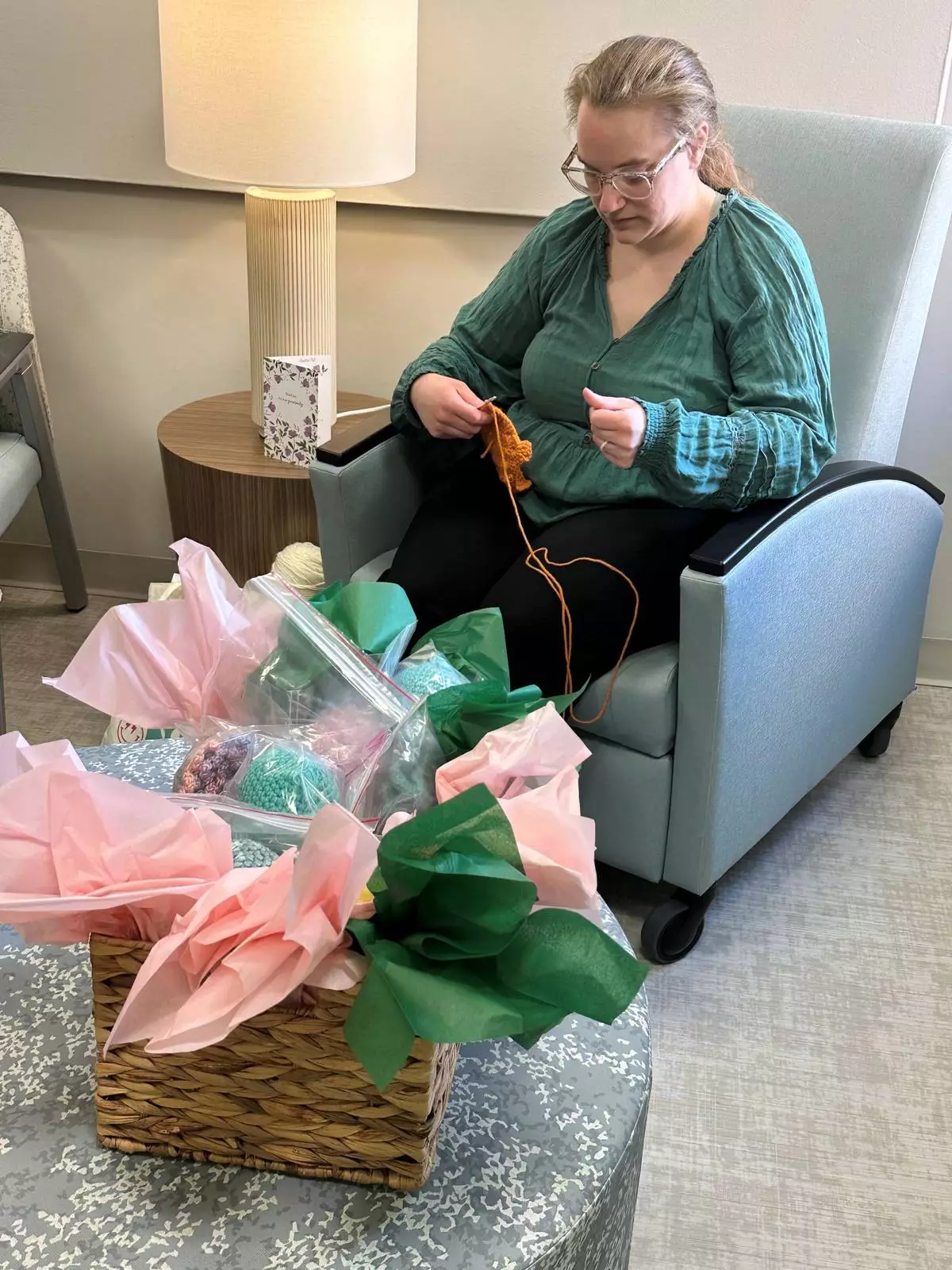 Joelle Haley crochets at the Children's Hospital of Michigan Neonatal Intensive Care Unit at DMC Hutzel Women's Hospital in Detroit, Thursday, Feb. 26, 2026. (AP Photo/Corey Williams)