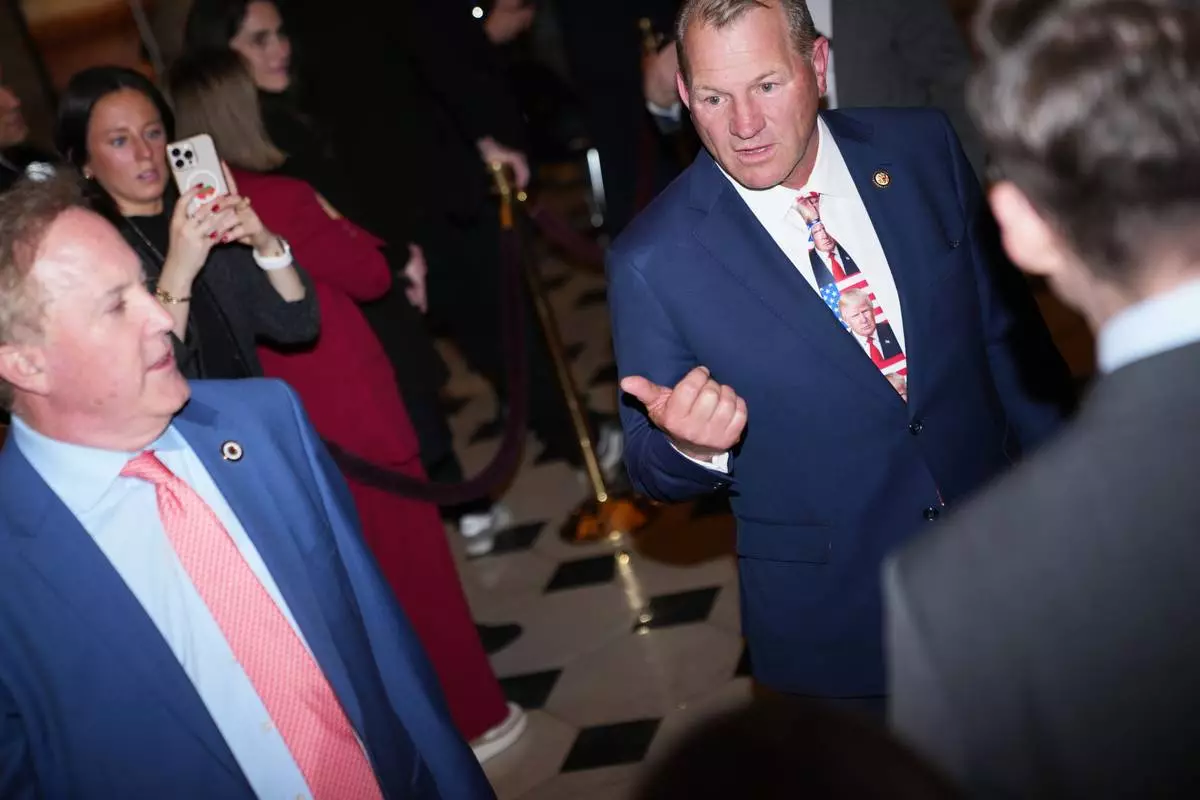 Texas Attorney General Ken Paxton and Rep. Troy Nehls, R-Texas, arrive before President Donald Trump delivers the State of the Union address to a joint session of Congress in the House chamber at the U.S. Capitol in Washington, Tuesday, Feb. 24, 2026. (AP Photo/Allison Robbert)