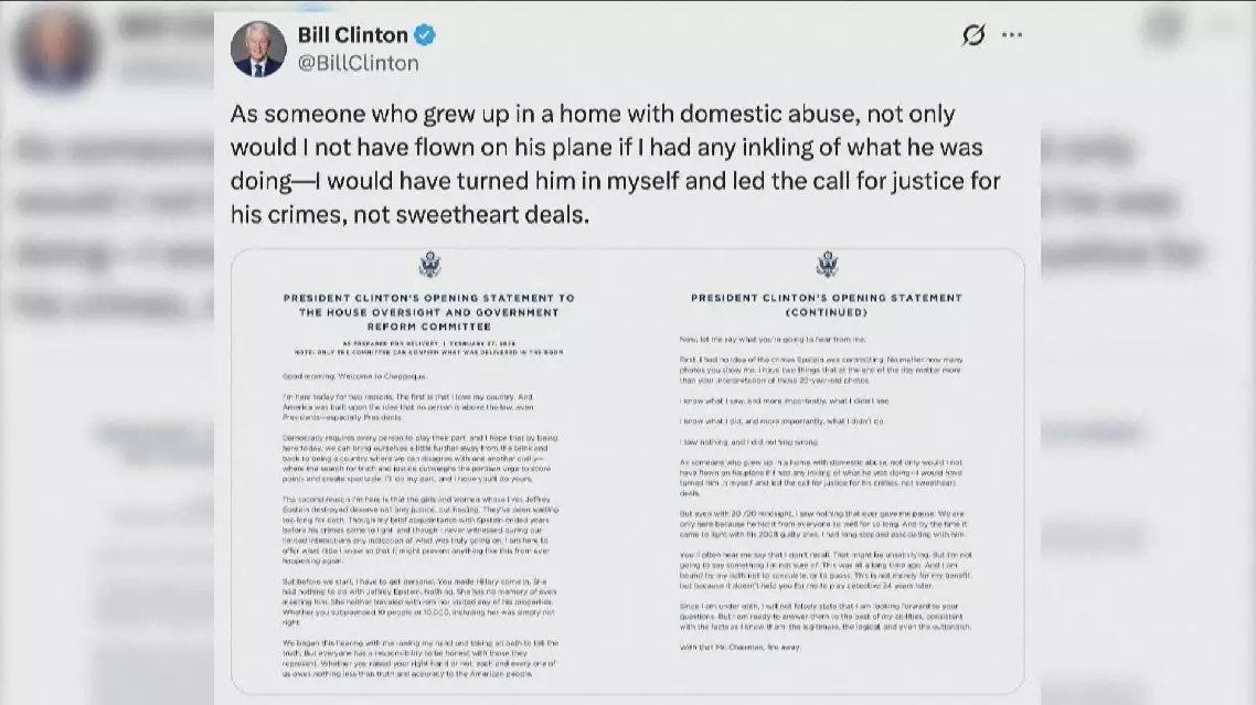Before testifying before the House Committee on Oversight and Reform, Clinton said in his opening statement that he "saw nothing" and "did nothing wrong" in relation to the disgraced financier.