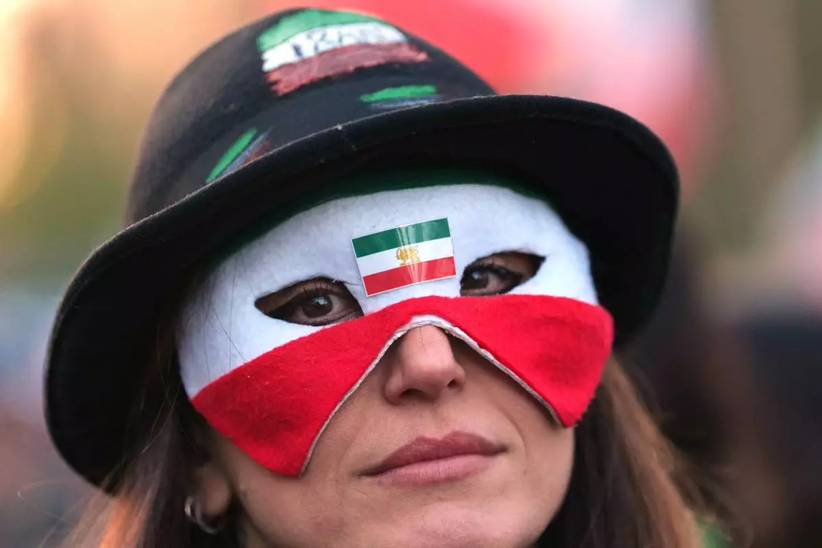 Iranian people attend a demonstration in support of the U.S. and Israeli strikes on Iran, in Berlin, Germany, Saturday, Feb. 28, 2026. (AP Photo/Markus Schreiber)