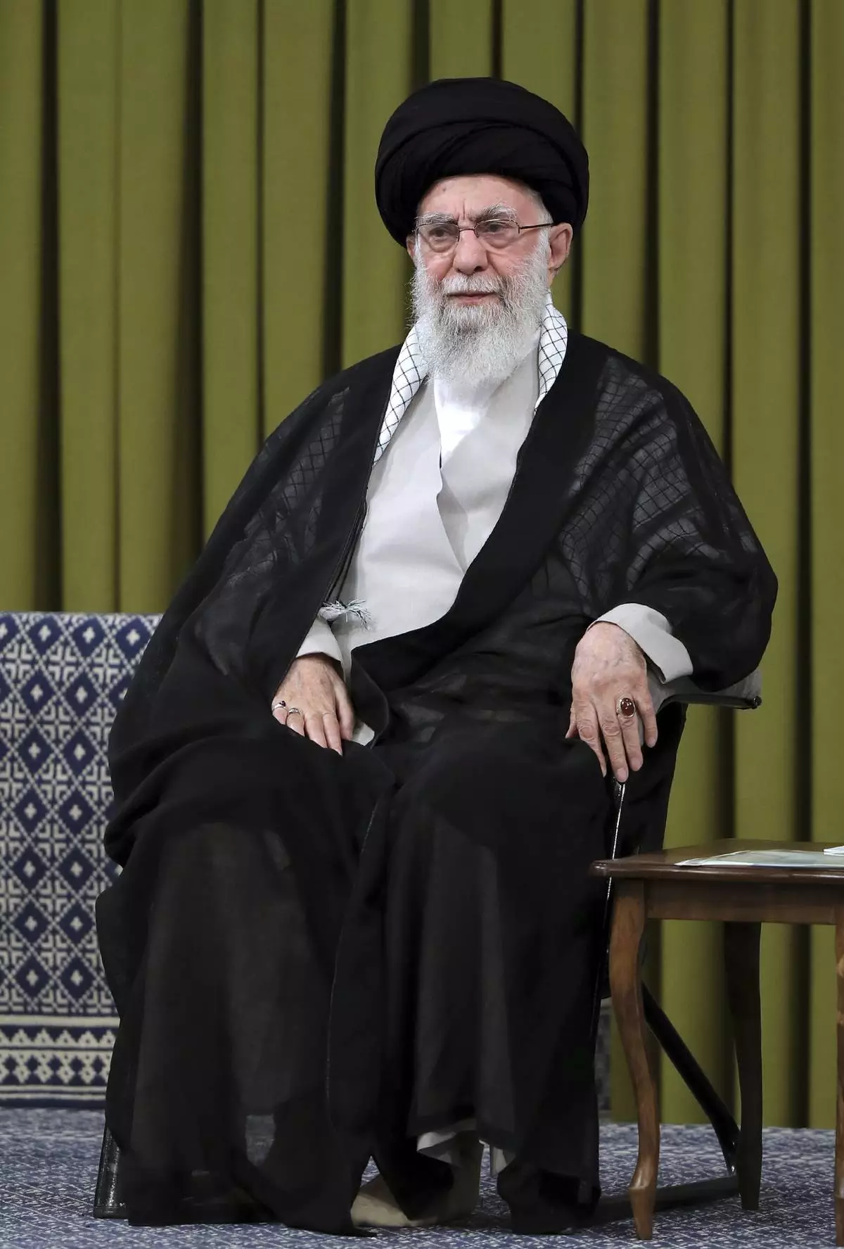 FILE — In this photo released by an official website of the office of the Iranian supreme leader, Supreme Leader Ayatollah Ali Khamenei attends a meeting commemorating Prophet Muhammad's birthday anniversary in Tehran, Iran, Sept. 21, 2024. (Office of the Iranian Supreme Leader via AP, File)