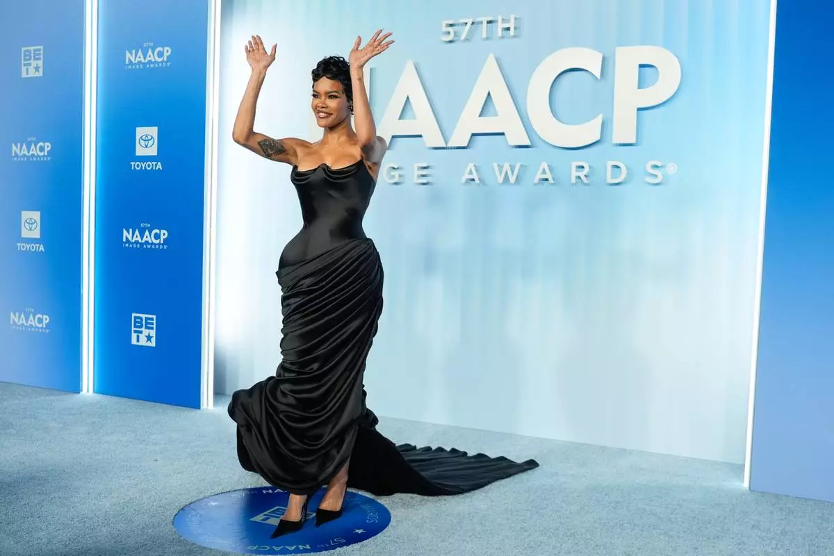 Teyana Taylor arrives at the 57th NAACP Image Awards on Saturday, Feb. 28, 2026, in Pasadena, Calif. (AP Photo/Chris Pizzello)