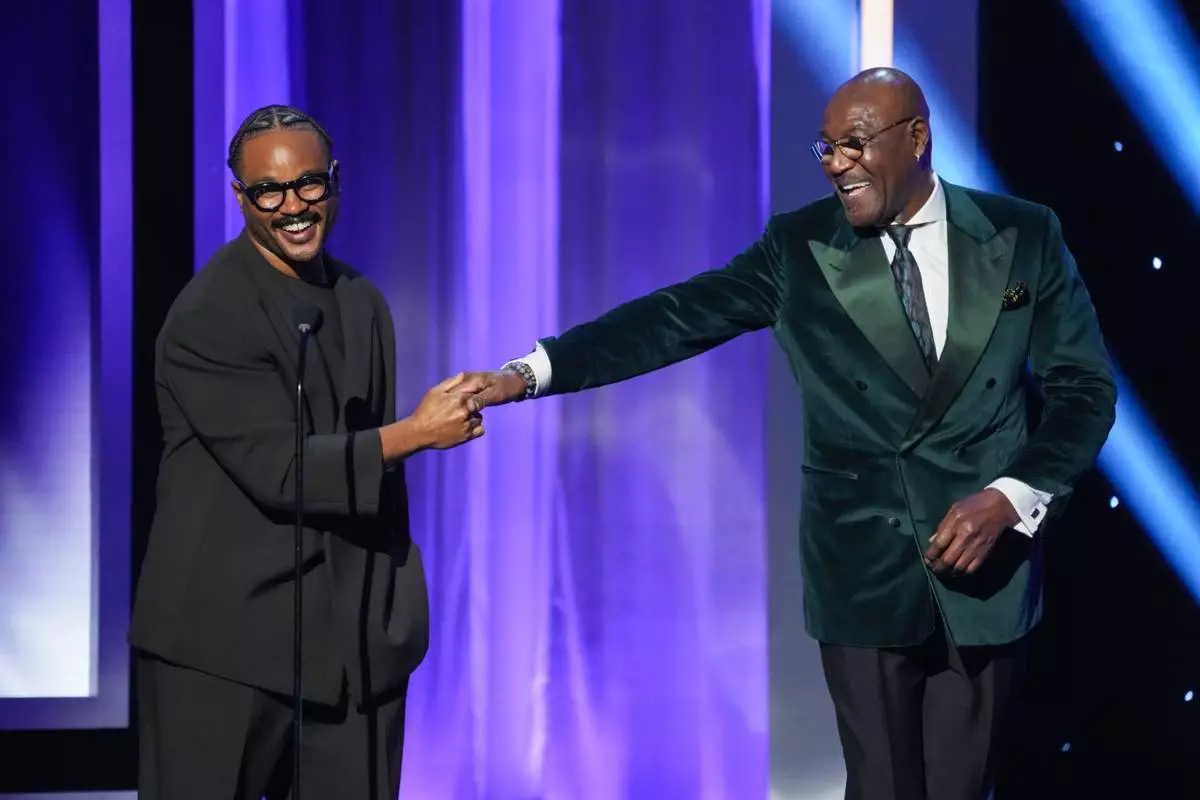 Ryan Coogler, left, and Delroy Lindo present the award for outstanding actress in a motion picture during the 57th NAACP Image Awards on Saturday, Feb. 28, 2026, in Pasadena, Calif. (AP Photo/Chris Pizzello)