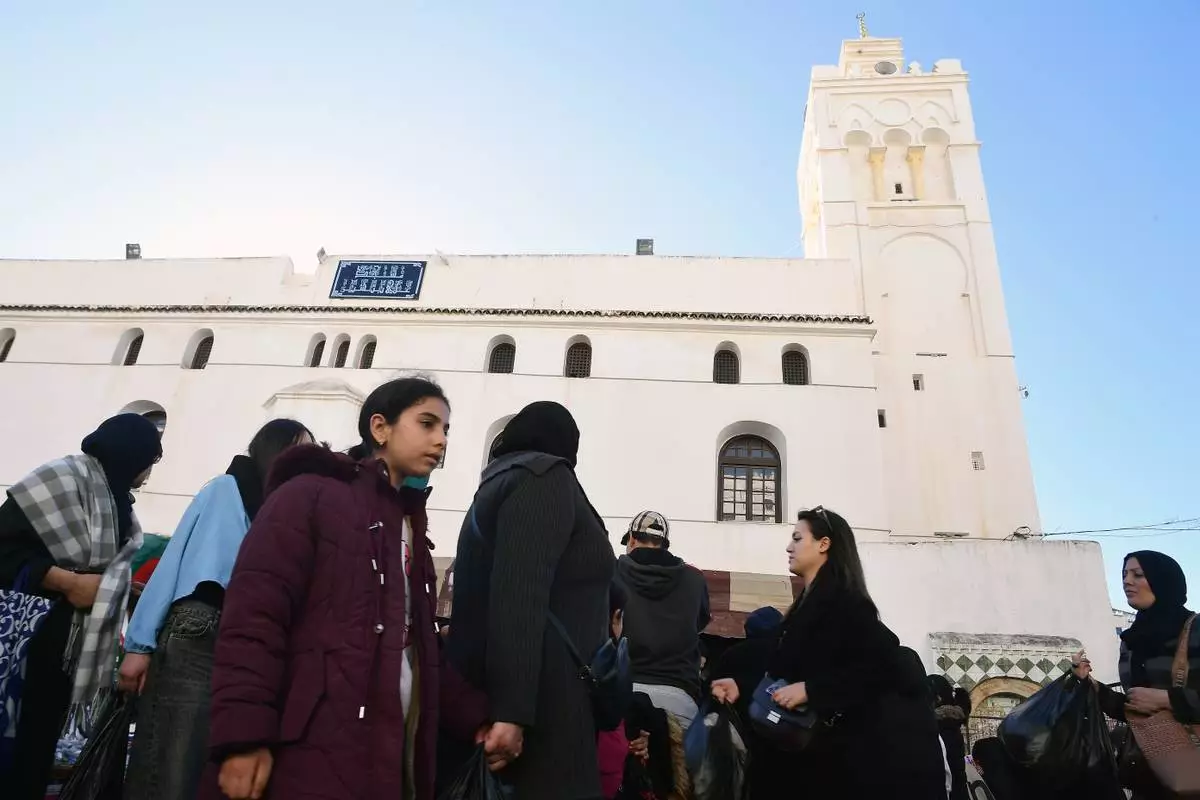 People walk at a market in Algiers, Algeria, Thursday, Feb. 17, 2026. (AP Photo/Fateh Guidoum)