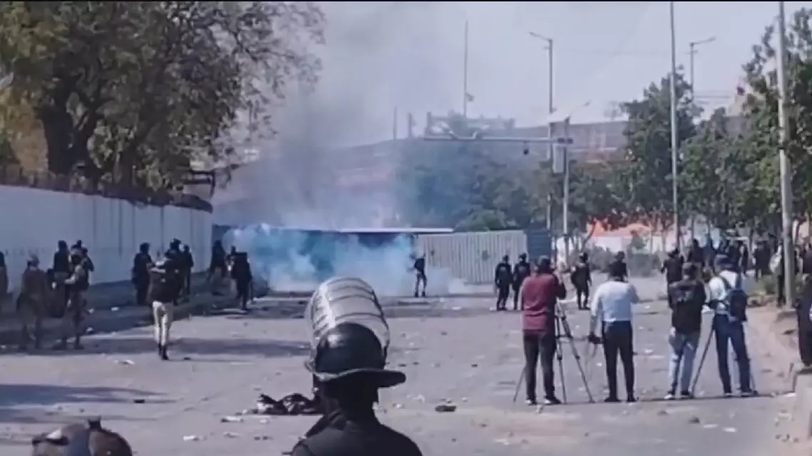 The clashes erupted on Mai Kolachi Road when demonstrators tried to enter the premises, prompting security forces to respond, according to Rescue 1122 Sindh.