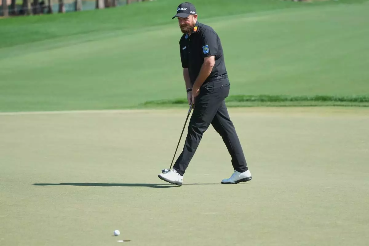 Shane Lowry of Ireland reacts to a missed putt on the second hole during the final round of the Cognizant Classic golf tournament, Sunday, March 1, 2026, in Palm Beach Gardens, Fla. (AP Photo/Marta Lavandier)