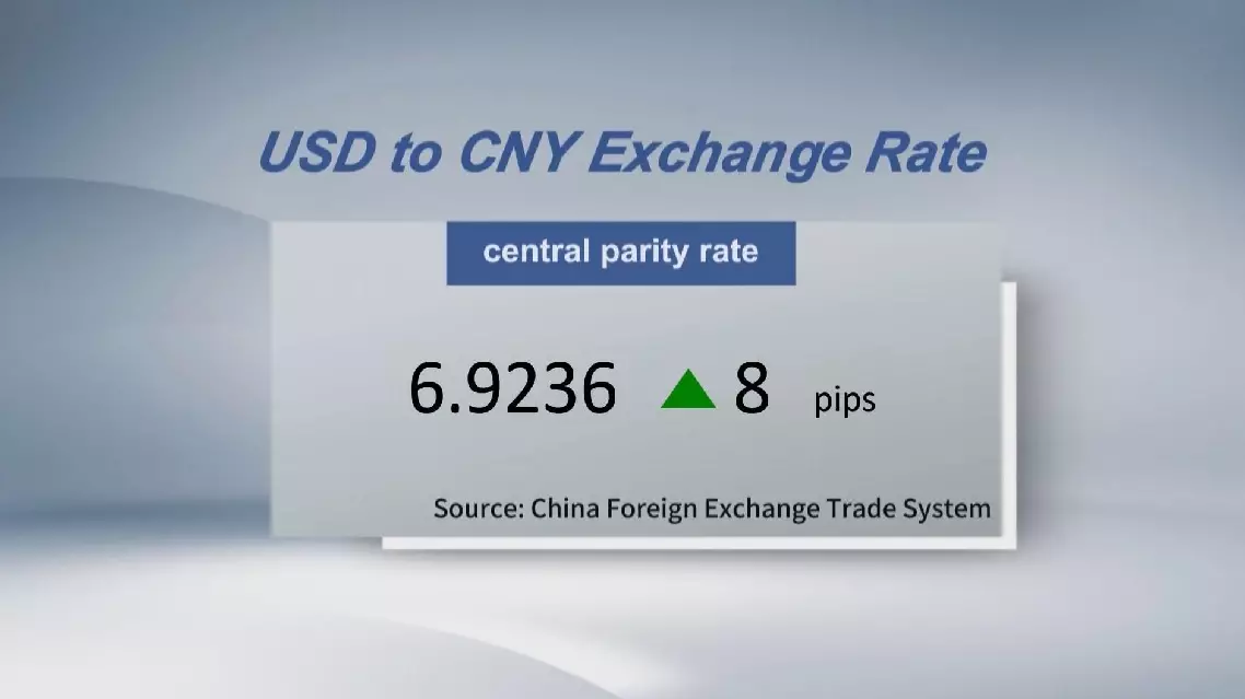 The central parity rate of the Chinese currency renminbi, or the yuan, weakened 8 pips to 6.9236 against the U.S. dollar Monday, according to the China Foreign Exchange Trade System.