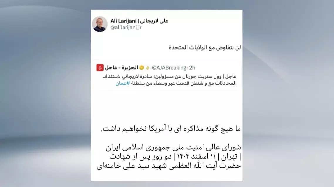 Iran's security chief Ali Larijani on Monday said Tehran will not resume nuclear talks with Washington, denying a report that he had privately sought dialogue through intermediaries amid the ongoing conflict with the United States and Israel.