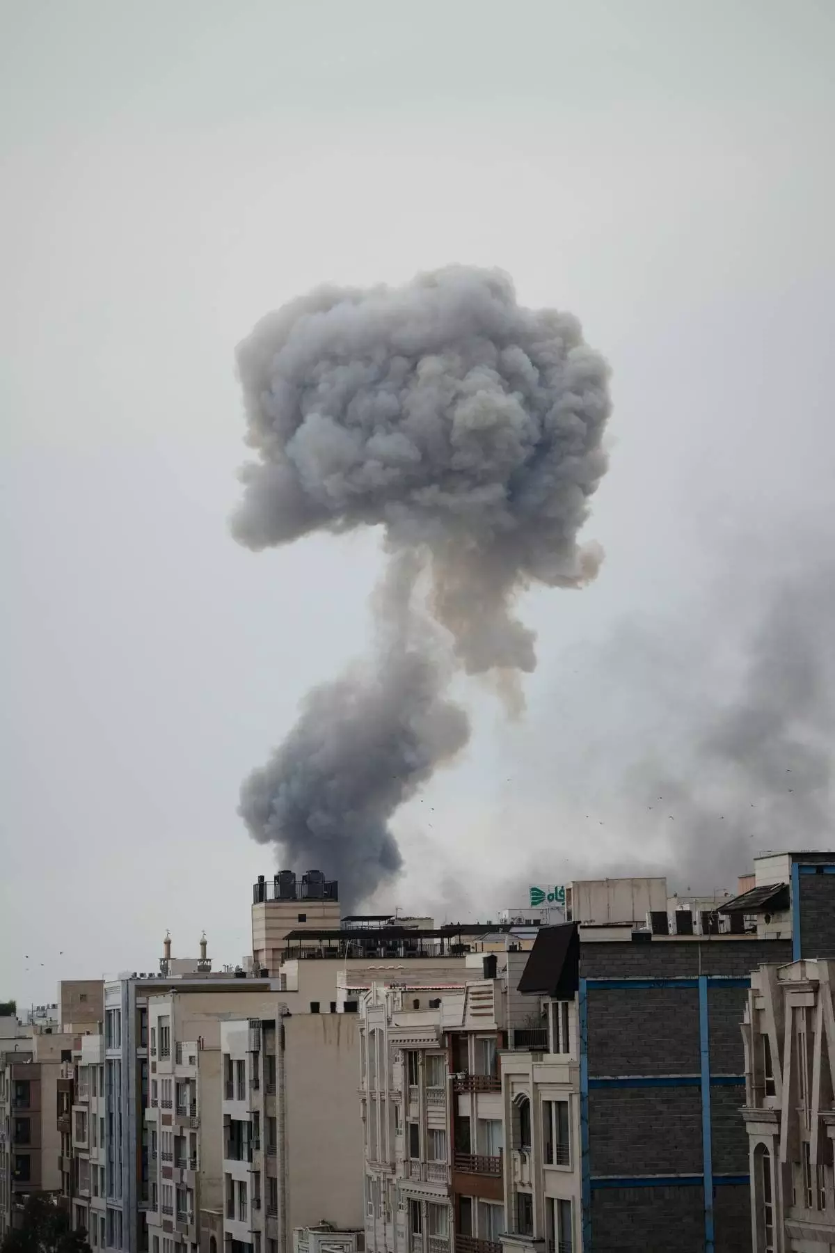 A plume of smoke rises after a strike in Tehran, Iran, Monday, March 2, 2026. (AP Photo/Vahid Salemi)