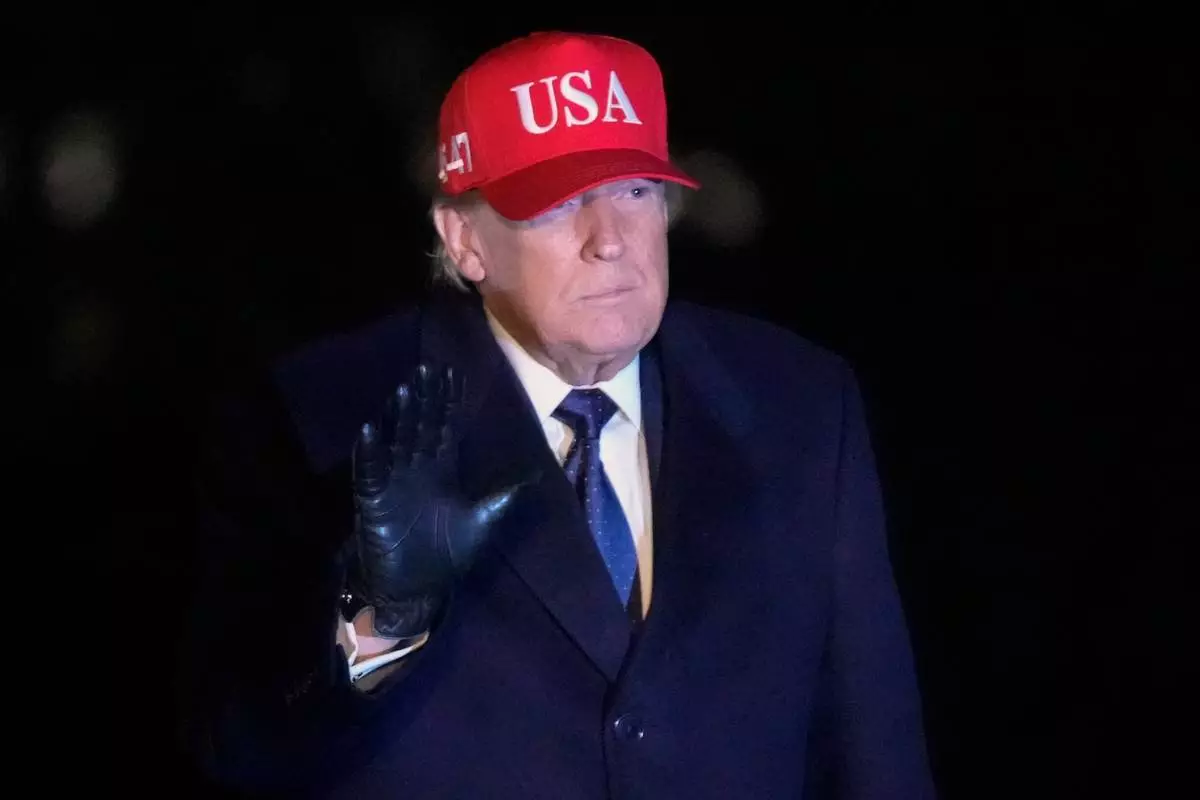 President Donald Trump waves after arriving on Marine One on the South Lawn of White House, Sunday, March 1, 2026, in Washington. (AP Photo/JMark Schiefelbein)