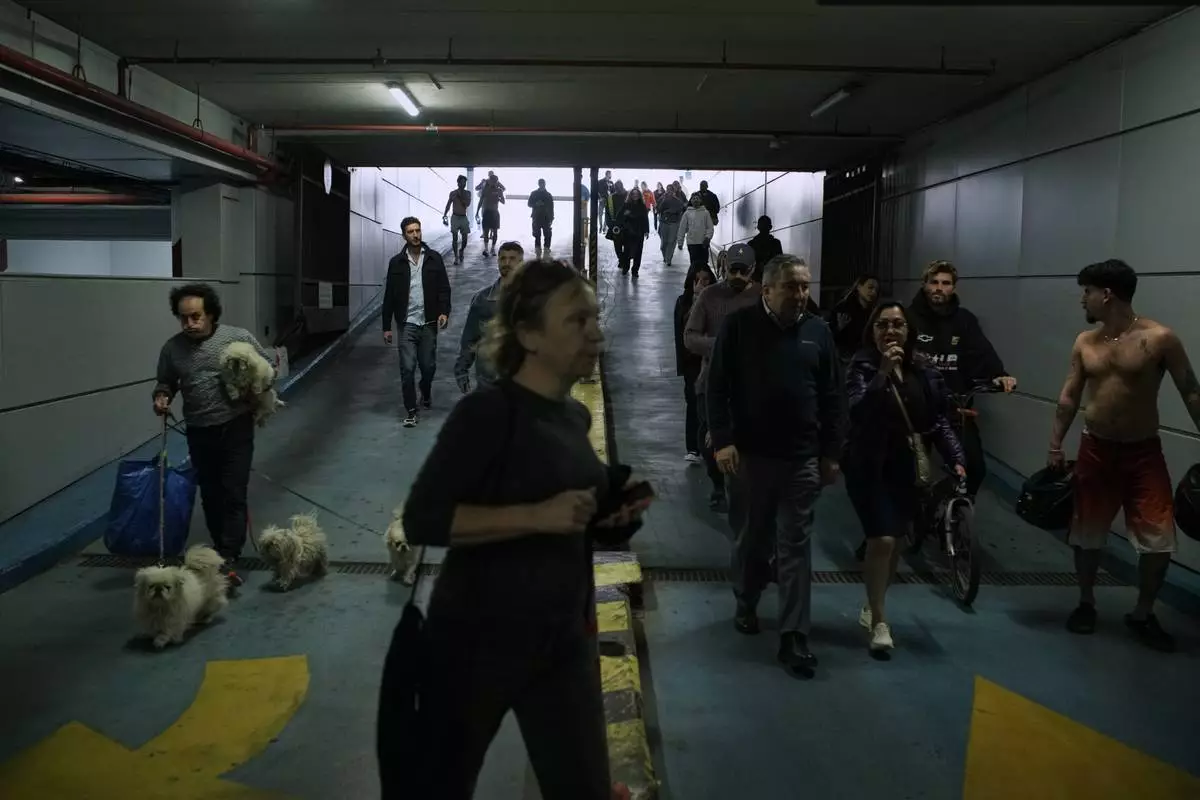People take shelter in an underground parking lot as air raid sirens warning of incoming Iranian missile strikes in Tel Aviv, Israel, Tuesday, March 3, 2023. (AP Photo/Leo Correa)