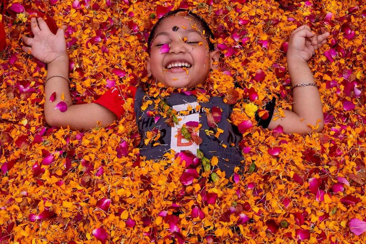 A child with cerebral palsy attends Holi, the Hindu festival of colors, at an event organized by the Trishla Foundation in Prayagraj, India,Sunday, March 1, 2026. (AP Photo/Rajesh Kumar Singh)