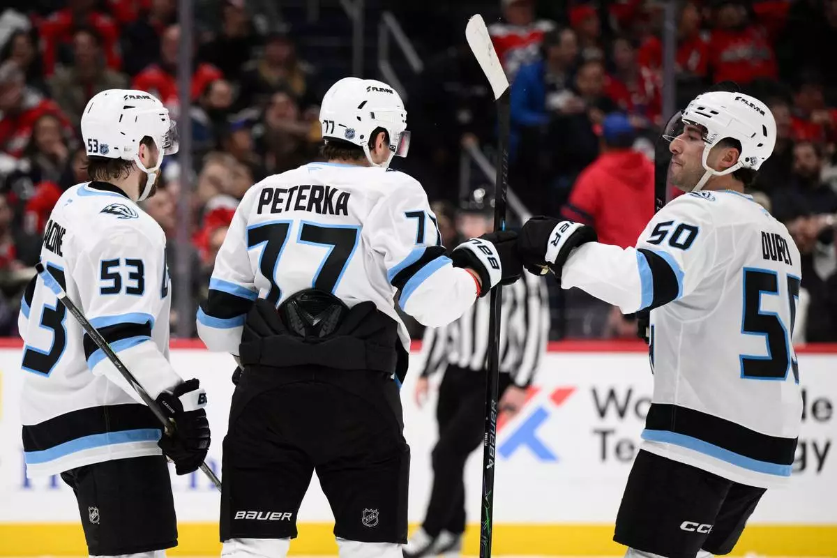 Peterka's 21st goal put the Mammoth up 3-1. With Utah on the power play, his shot from near the slot bounced off the post and off goalie Logan Thompson. When Thompson swept his glove hand back behind him, he knocked the puck into the net.