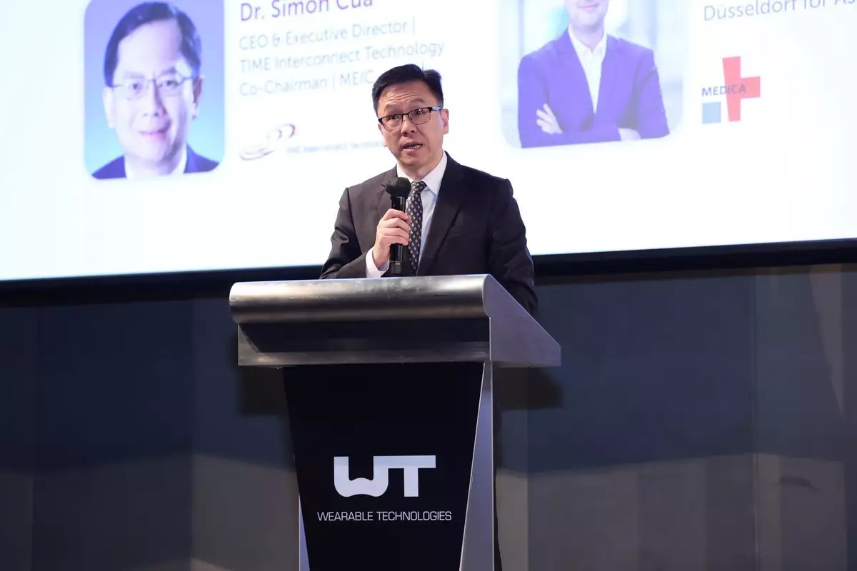 Mr Stammel (Chief Executive Officer of WT Wearable Technologies Group, Mr Christian Stammel), Terry (Chief Executive Officer of the Hong Kong Science and Technology Parks Corporation, Mr Terry Wong), Dr Cua (Co-Chairman of Medical Engineering and Innovation Council of the Federation of Hong Kong Industries, Dr Simon Cua), Mr Wismer (Regional Head of Messe Düsseldorf for Asia of MEDICA, Mr Lars Wismer), distinguished guests, ladies and gentlemen,