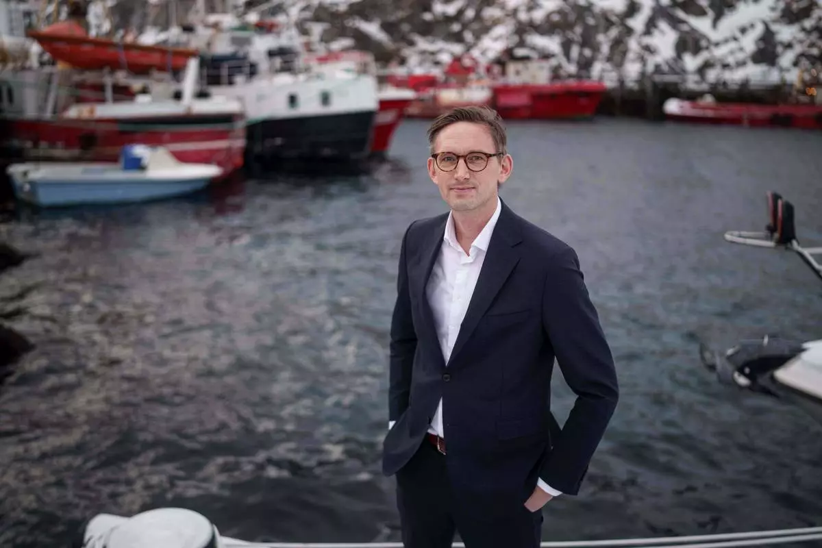 Toke Binzer, CEO of Royal Greenland, poses for photo at the harbor of Nuuk, Greenland, on Thursday, Jan. 22, 2026. (AP Photo/Evgeniy Maloletka)